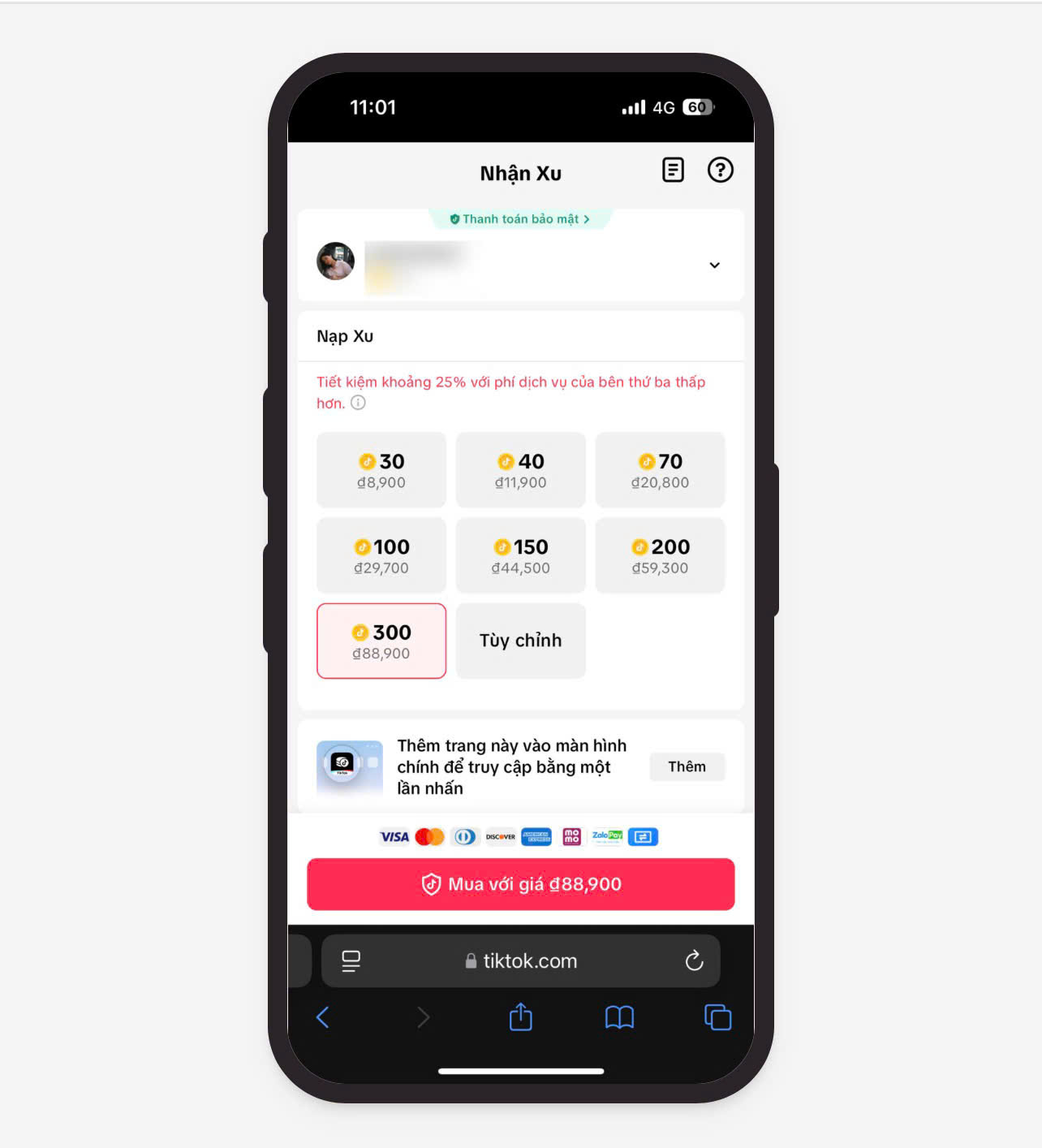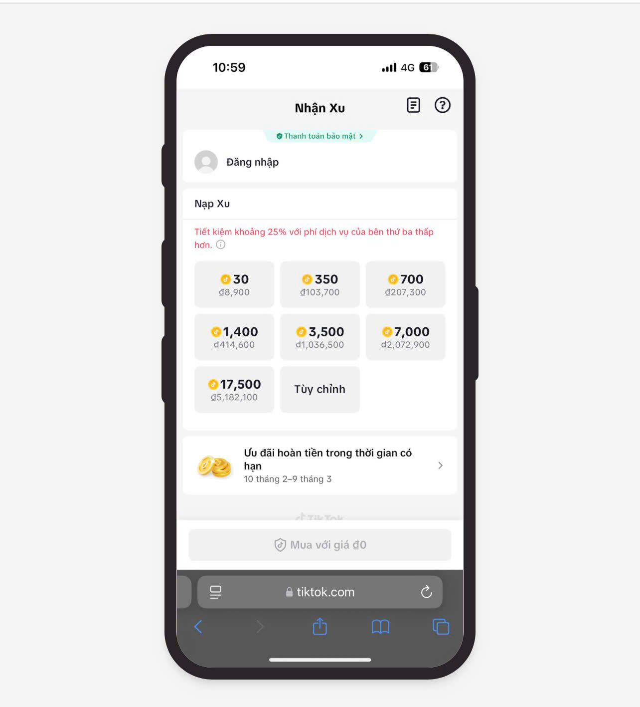 Bước 1: Truy cập trang nạp xu TikTok